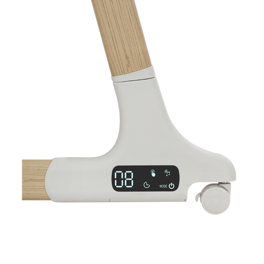 With its smart innovative electronic rocking system, the 'Rocking' Bedside Bassinet gently rocks your little one into dreamland. The built-in motion sensor automatically responds when your baby stirs, so you can enjoy uninterrupted rest. Choose from five soothing rocking speeds, set timers for 8, 15, or 30 minutes, and let your baby drift off with 12 built-in pink & white noise melodies — or stream their very own favorites through Bluetooth. Bedtime becomes effortless, peaceful, and perfectly tailored to your baby’s needs.